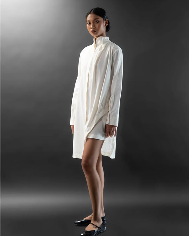 Merayakan Hari Kartini, koleksi Puragraph Vol. I juga membawa napas emansipasi melalui rancangannya. Koleksi kemeja oversized dan dekonstruktif ini secara sadar mendobrak pakem busana heritage yang konvensional, menawarkan kebebasan bergerak tanpa batas bagi para perempuan modern. Siluetnya yang asimetris dan tegas merepresentasikan karakter perempuan masa kini yang mandiri, kuat, dan berani tampil beda.