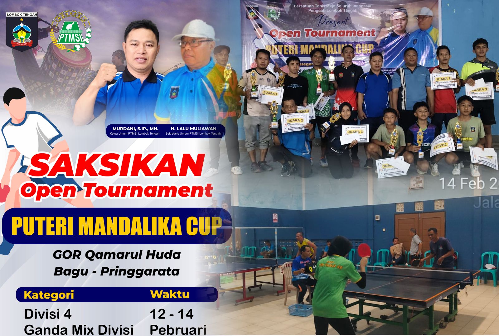 Puteri Mandalika Cup PTMSI Lombok Tengah, 12 - 14 Pebruari 2026 di GOR Qamarul Huda.